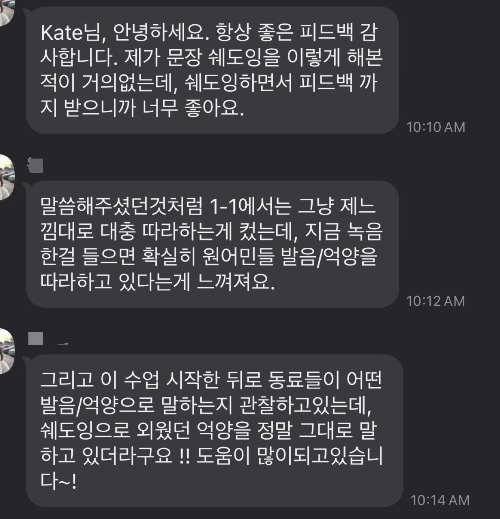 👉원어민을 성대모사 하듯 연습하고, 어색한 부분은 오답노트를 쓰듯이 효율적으로! 가성비 있게 가야 합니다.
