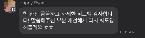 따로 후기를 요청드리지 않았음에도 불구하고