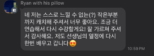 👉1:1 로 각자의 어려움에 맞춰 서로 소통하고 초밀착 음성 피드백으로 해결! |